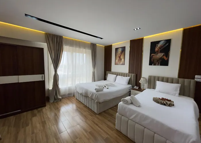 The centre of Kafrat al Jabal is a 30 minutes' walk of this luxury hotel. Guests can get to the three Khafre's Pyramid that is 10 minutes by car from the Pyramids Sunshine View. The property is located not far from the ruined Layer Pyramid. For those travelling from afar, Cairo International airport is 32 minutes' drive away.